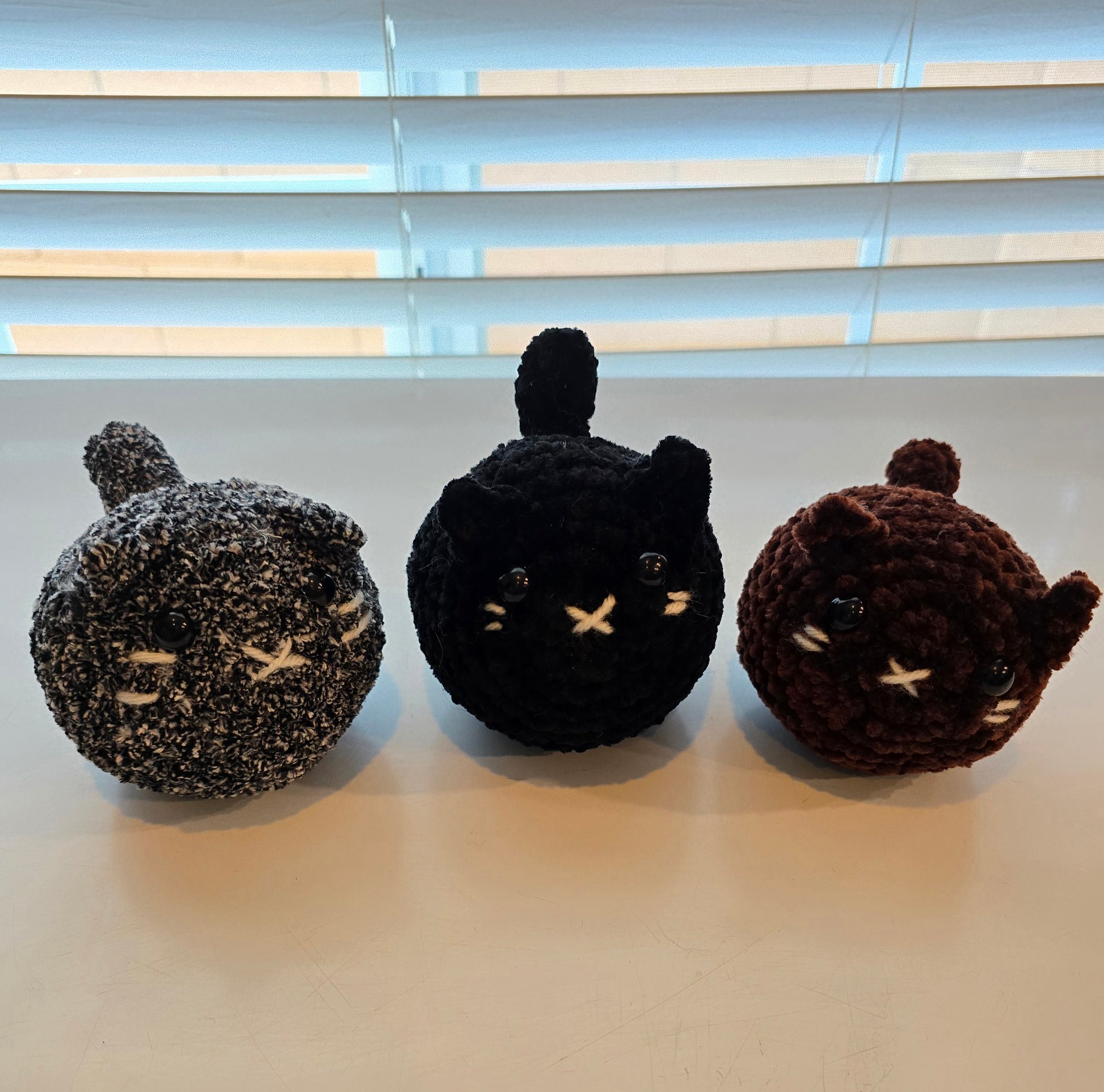 A medium cat loaf plush made to order in your choice of coat color (more choices coming in the future)! Plushie measures approximately 6 inches tall, 6 inches wide, and 12 inches in diameter. Made of chenille yarn, polyester stuffing, and plastic safety eyes. Processing time is 1-5 days depending on how many current orders I am fulfilling. Pattern by @happylilbina